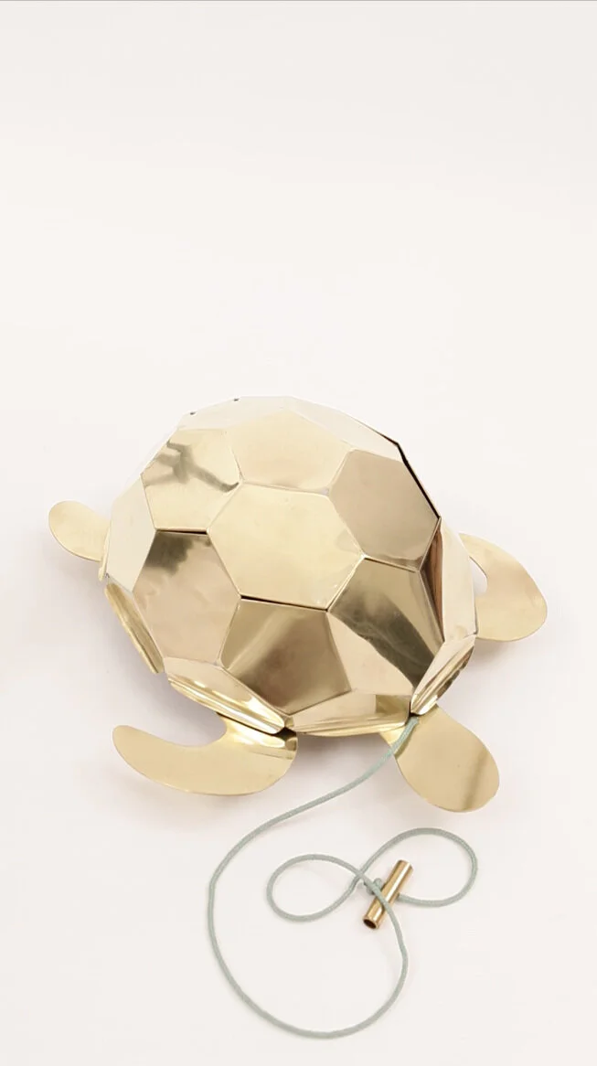 La tortue en laiton a des roulettes sous la carapace et contient une boîte à musique à l'intérieur. C'est une surprise de voir le ciel étoilé et d'entendre la musique qui sort de cette merveilleuse créature. C'est la “Xiquinha” de Marina Rheingantz et Lucas Fazzio.
